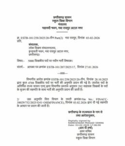 छत्तीसगढ़ में 5000 शिक्षक भर्ती को मिली मंजूरी, स्कूल शिक्षा विभाग ने जारी किया आदेश