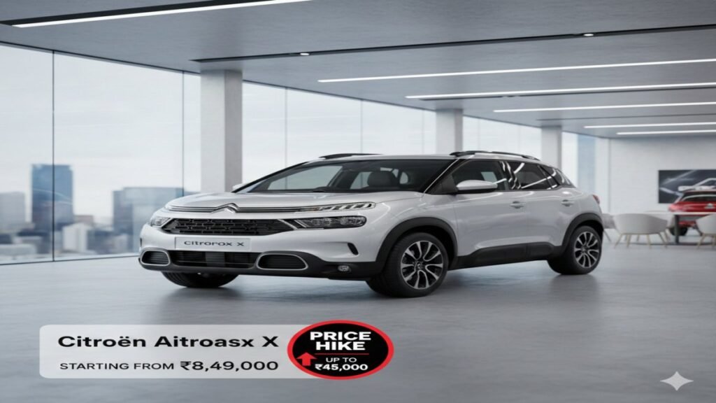नई दिल्ली — भारतीय ऑटोमोबाइल बाजार में बजट सेगमेंट से लेकर प्रीमियम एसयूवी तक अपनी पहचान बनाने वाली कंपनी सिट्रॉएन (Citroen) ने ग्राहकों को बड़ा झटका दिया है। मीडिया रिपोर्ट्स के अनुसार, निर्माता ने अपनी लोकप्रिय एसयूवी Citroen Aircross X की कीमतों में तत्काल प्रभाव से बढ़ोतरी कर दी है। अलग-अलग वेरिएंट्स के आधार पर यह वृद्धि 20,000 रुपये से लेकर 45,000 रुपये तक की गई है।